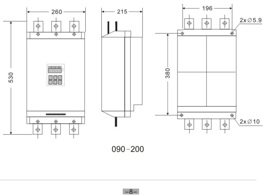 ①软启动器成垂直安装,请勿倒装,斜装或水平安装。应使用螺钉安装在牢固的结构上